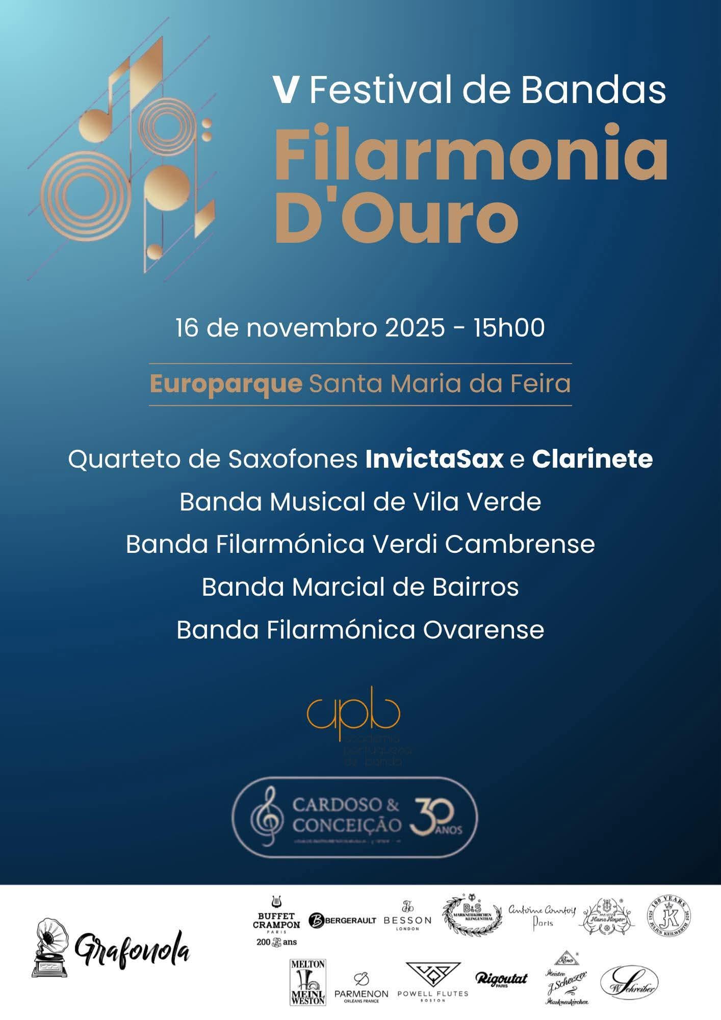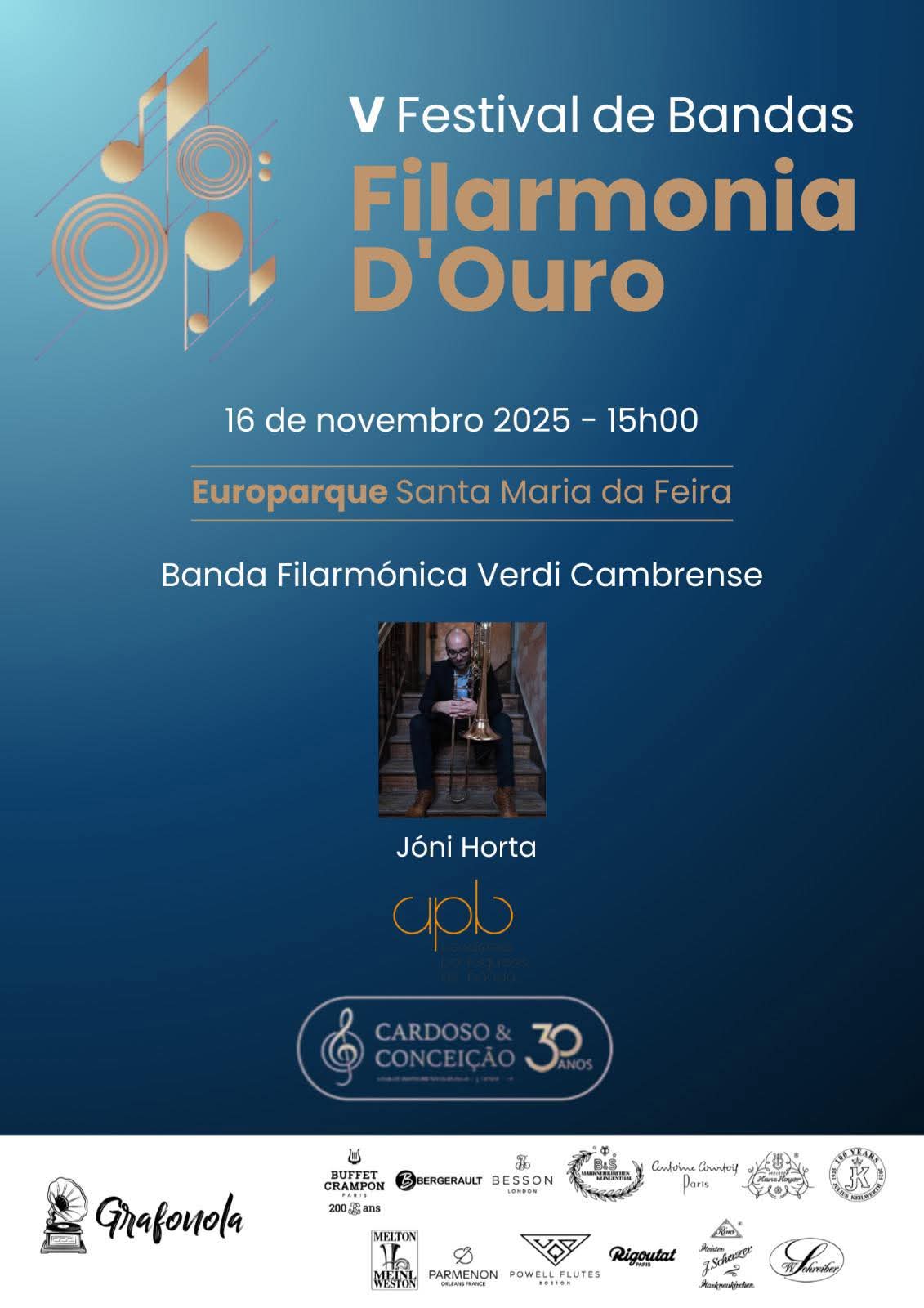 V Festival de Bandas Filarmonia D Ouro Filarmónica Verdi Cambrense Solista: Jóni Horta, Trombone Baixo Participação especial da Fadista Patrícia Costa Direção: Francisco Luís Vieira